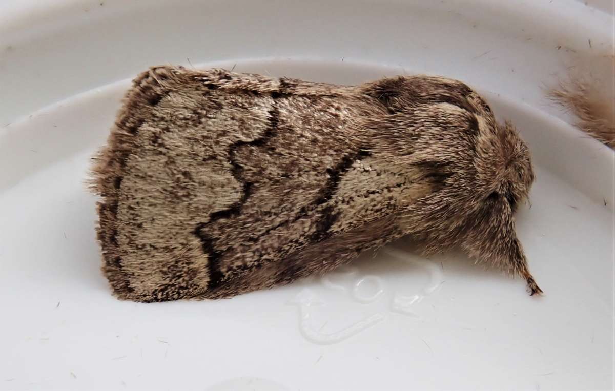 Pale Eggar cannot really be confused with other Eggar species as it is the only pale and dark grey one amongst them. However, it could be mistaken for Oak Processionary or Pine Processionary - on Pale Eggar there is a darker grey central band flanked by paler bands across the forewing.